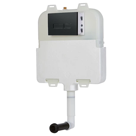 The sleek and streamlined Arezzo compact water saving pneumatic dual flush concealed cistern with square button matt black flush plate, ideal for bathroom furniture and in wall installations. It has an insulated durable design, reducing the need for maintenance and is economical with water, providing a 3 or 6 Litre flush. It comes with cable operated flush plate for simple installation. For use with back to wall pans.Â