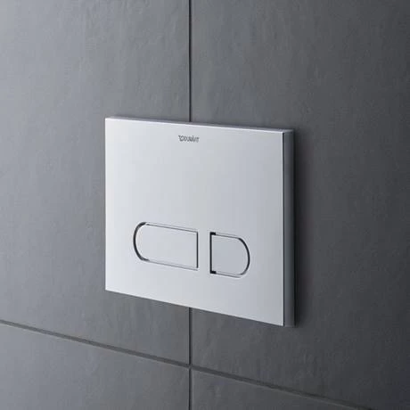 This mechanical DuraSystem A1 toilet flush plate is made from plastic high-gloss chrome and is surface-mounted. Compatible with Duravit toilet fixing frames.Â