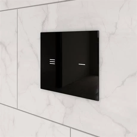 Ideal Standard Symfo NT1 Black Touchless Glass Dual Flushplate is an electronic actuation flush plates with dual flushing system. The No touch (NT) capacitive sensors work by waving had in front of the desired flush symbol. LED backlights are factory set to blue but can be changed to Red, Yellow, White, Green, Violet, Orange or Purple.