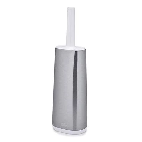 The Joseph Joseph Flex Steel toilet brush and holder features a flexible, D-shaped head that reaches all areas, even under the rim. Unlike conventional toilet brushes that hold dirt and liquid and with bristles that distort over time, the Flex toilet brush has widely spaced bristles that prevent dirt clogging, allowing liquid to drain quickly and minimising drips between cleaning and storing.