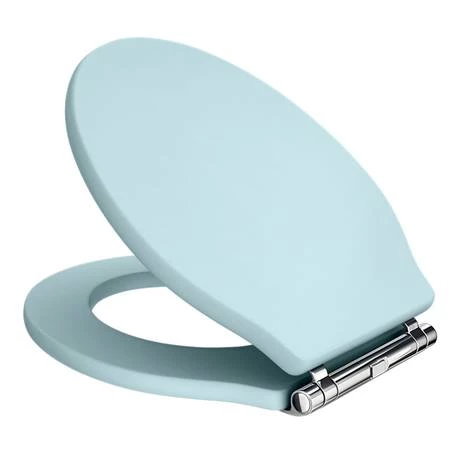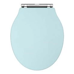 A high-quality traditional round Duck Egg Blue coloured wooden effect MDF toilet seat with chrome hinges from our exclusive Old London range, ideal for creating a period look in your bathroom. Designed to match our collection of Old London Duck Egg vanity units. Comes with non-slip buffers.