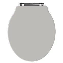 A high-quality traditional round Stone Grey finish wooden toilet seat with chrome hinges from period bathroom specialists Old London, ideal for creating a period look in your bathroom. Designed for use with Old London’s collection of Chancery Toilets. Comes with non-slip buffers.