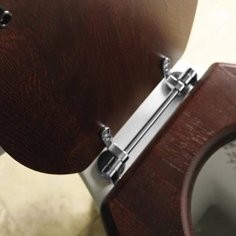 A luxury hand-crafted solid mahogany toilet seat with quality heavy-weight chrome bar hinges from Silverdale. For use with Silverdale high / low level toilets.