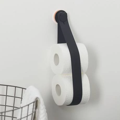 The Tiger Urban Spare Toilet Roll Holder in Black comes with two decor rings. The decor rings, in the colours copper and grey, make it possible to add a subtle color accent. It is also possible to mount the toilet paper holder without the decor ring, making it very easy to adapt the product to the desired style. The flexible belt offers space for two extra rolls of toilet paper, so that there is always enough paper available.
