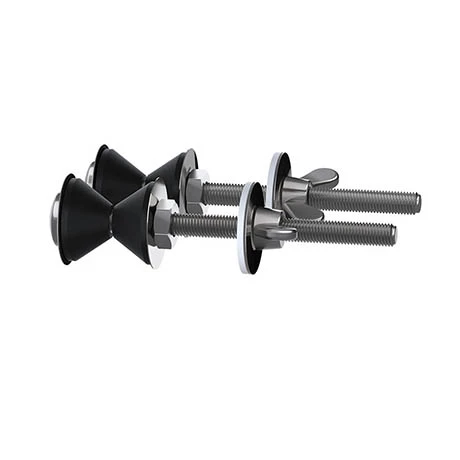A stainless steel bolt through kit, for connecting the toilet cistern to pan, includes two bolts, conical washers, washers and wing nuts.